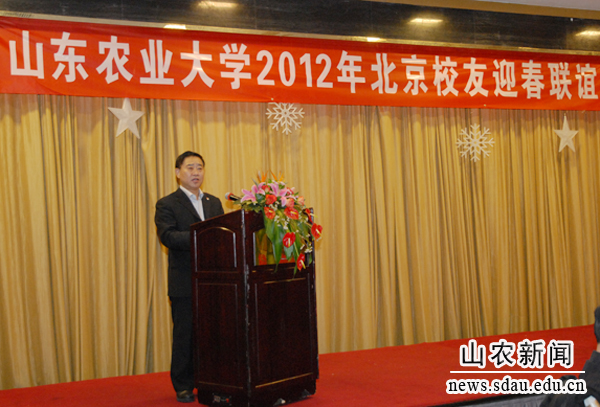 北京校友会会长、中国农业大学副校长王涛在致辞中说,温校长介绍的学校情况,让我们深受鼓舞。2011年,学校发展的综合实力、核心竞争力和影响力都取得了长足的进展。2011年,学校紧扣提高教学质量主题,本科教育得到了长足发展,学校召开了本科教学工作会,并明确了教学发展的目标。学校在学科建设方面的成绩为进一步发展奠定了很好的基础,科研经费的数字让人惊喜,基础设施方面也有了很大改善。本科生考研率、就业率那么高,这说明我们学校的培养质量、教育教学水平都在不断提高。学校取得的每一点成绩,我们都深感自豪与骄傲。北京校友植根于农大,植根于农大的文化,感恩农大,心系农大,在新的一年,我们在各个岗位上的北京校友都会不遗余力地为农大作贡献。祝愿农大的明天越来越美好。