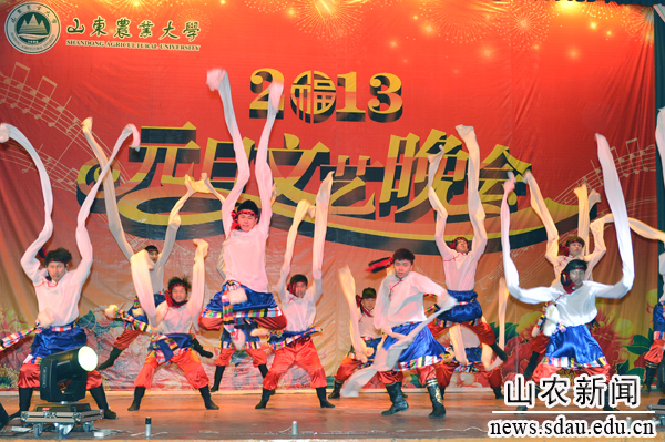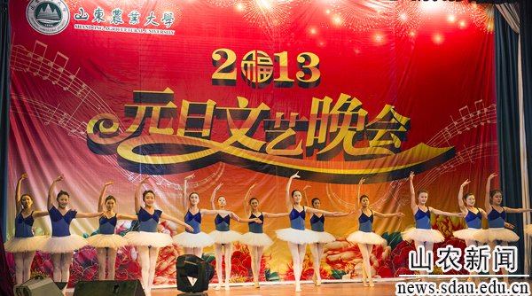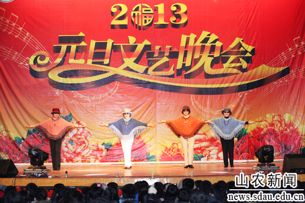 12月27日晚,西礼堂内流光溢彩,华灯绽放,座无虚席,bat365在线平台登录2013年元旦文艺晚会在这里精彩上演,高雅的民乐、优美的歌舞在这寒冬的夜里为农大师生送来温暖的新年祝福。学校领导孙永华、张宪省、车先礼、朱莉、嵇景涛以及各部门、各学院负责人和2000余名师生一起观看了晚会。