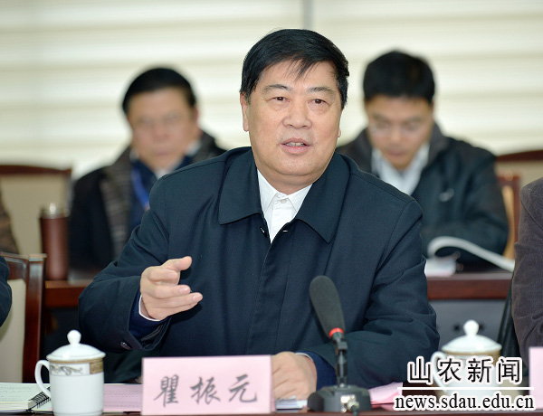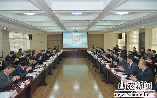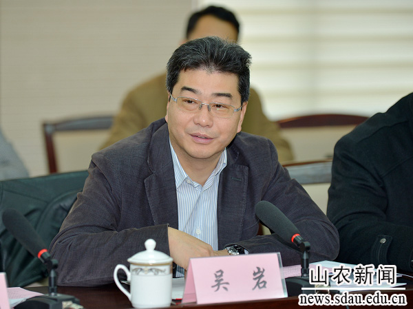 吴岩在会上讲话。他指出,本科教学工作审核评估,是在中国高等教育以提高质量为核心的内涵发展的背景下开展的。12月9日,教育部部长袁贵仁签署了启动审核评估的文件,山东农大这次评估正好处在启动审核评估的节点上,也是国内第一所接受审核评估的农业院校,因此做好本次评估具有十分重要的意义。希望学校一要保持平常心、正常态,为专家展示出正常的工作、学习状态;二要保持学习心、开放态,与专家保持良好的交流,虚心听取专家意见和建议,以便今后更好地改进工作,切实提高教学质量。