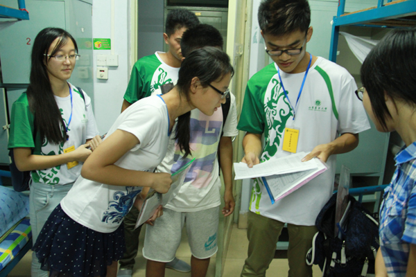 在志愿者引导下入住宿舍(水土学院供稿)