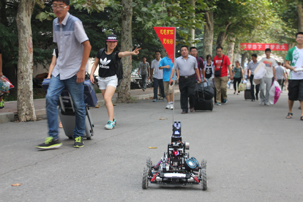 “机器人志愿者”为新生引路很用心(机电学院供稿)