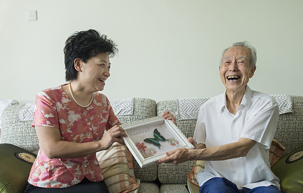 图为党委书记邢善萍看望梁玉堂教授